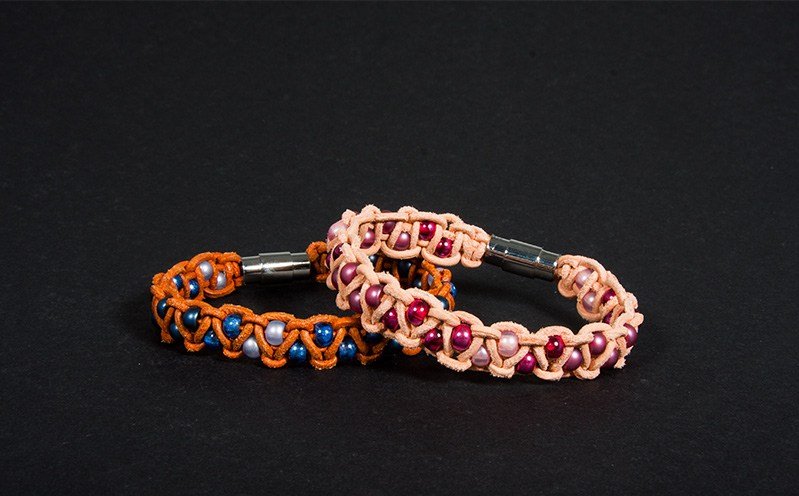 60 min Anleitung in 6 Schritten Die Lederriemen kommen durch die besondere Knüpftechnik richtig gut zur Geltung. Und so geht’s: