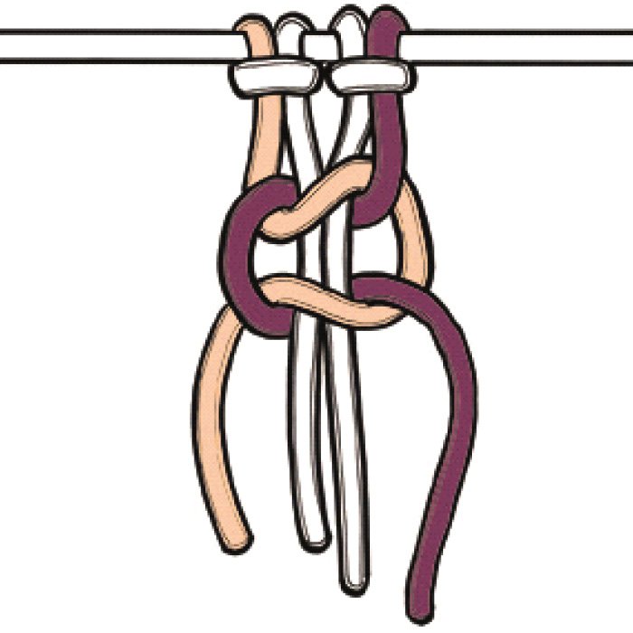 Mit den beiden langen Lederriemen einen Weberknoten über die kurzen knüpfen.4 ![]()