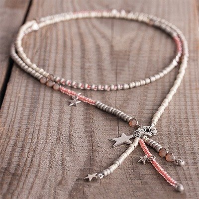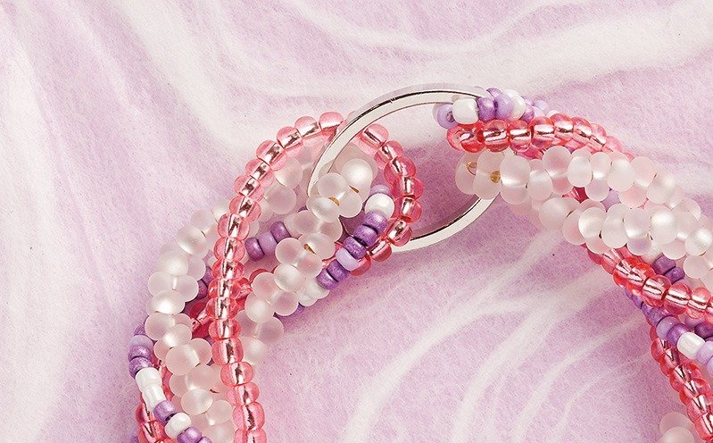 Anleitung in 4 Schritten Die Perlen fädelst du zunächst einzeln auf den Seidenfaden. Alle Perlenstränge drehst du ineinander und fixierst sie mit einem Clip-Kettenverschluss. Und so geht’s: