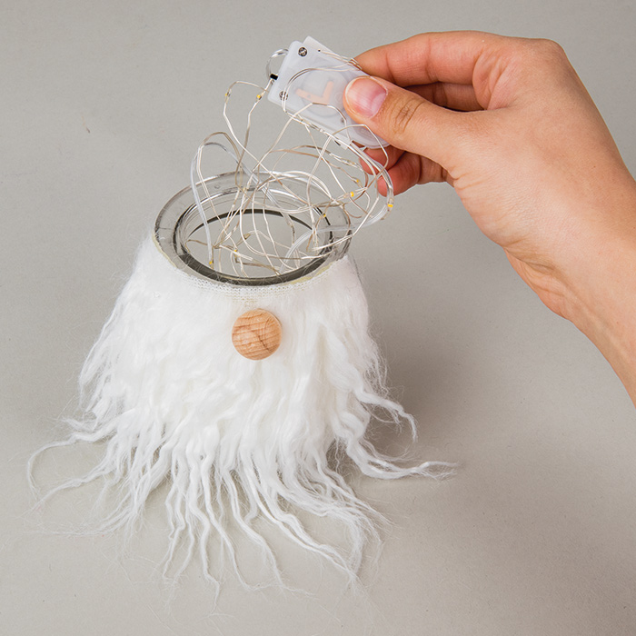 Anleitung in 4 Schritten Der Weihnachtswichtel sorgt für stimmungsvolles Licht und ist mit Filz und Langhaarplüsch im Nu gebastelt.
