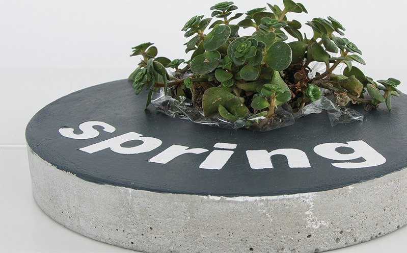 Anleitung in 12 Schritten Bemale die runde Betonfliese mit Chalky Finish und klebe Buchstaben drauf. Die Aussparung kannst du bepflanzen.