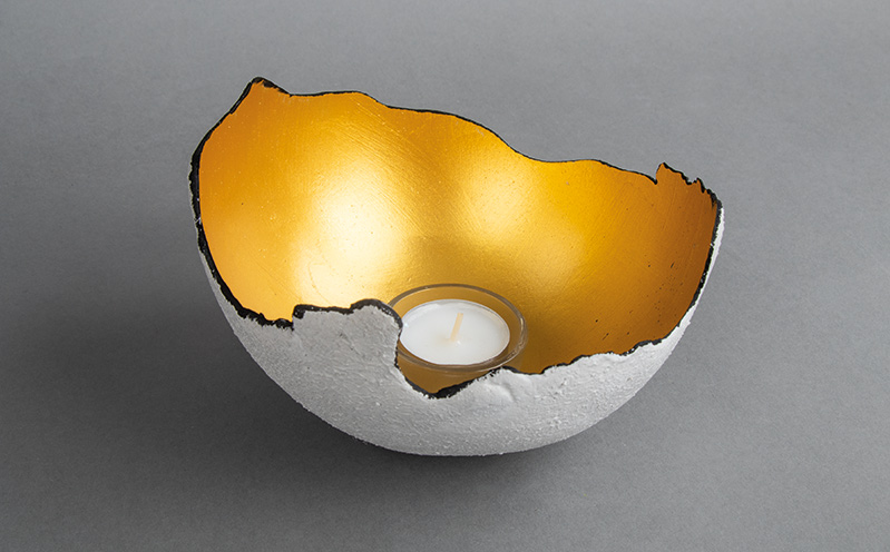Bemale mit der Farbe Extreme Sheen gold die Betonschale innen komplett aus. Evtl. ist ein 2. Anstrich empfehlenswert. Trocknen lassen.6 ![]()