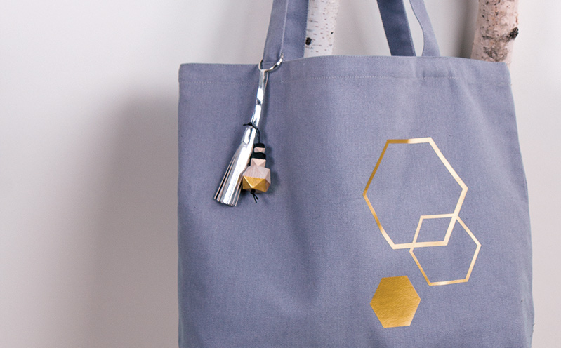 Anleitung in 8 Schritten Der graue Canvas Shopper bekommt mit den goldenen, geometrischen Figuren den besonderen Kick. Mit der Bügel-Transferfolie bringst du dein Motiv auf die Tasche.