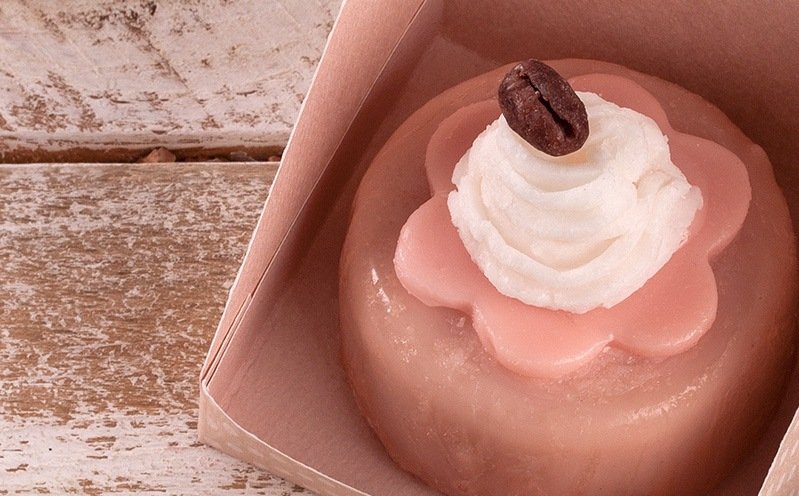 Creme Seife mit Schokoglasur in einer Geschenkschachtel