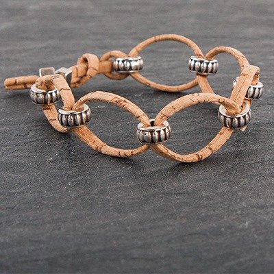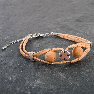 Den Schmuckverschluss auf das Korkband legen und mit Hilfe einer Flachspitzzange auf der Unterseite einklappen.3 ![]()