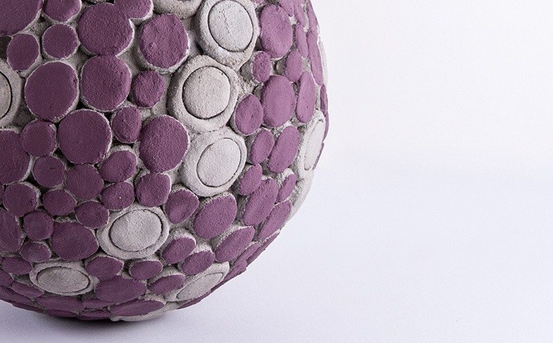 Wiederhole das Anmischen des restlichen Knetbetons wie bereits beschrieben und ummantele die freie Styroporfläche wie bereits bei der ersten Hälfte. Die Verbindungsstelle trockener/frischer Knetbeton mit einem Pinsel befeuchten, damit sich die beiden Schichten gut verbinden. Dekoriere auch die zweite Hälfte wie oben bereits beschrieben mit Kreisen in verschiedenen Größen.11 ![]()