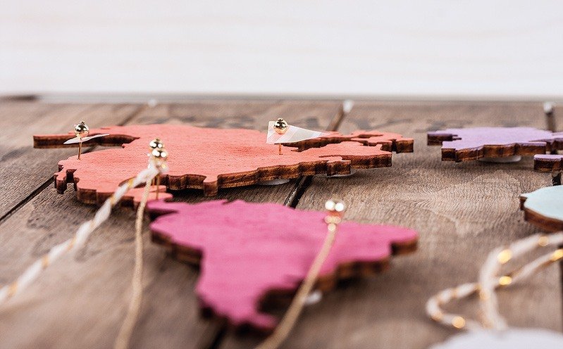 Anleitung in 12 Schritten Die Kontinente der Weltkarte aus Holz bemalst du mit verschiedenen Chalky Finish Farben. Die Holz-Tags kannst du bestempeln und hängst sie an die einzelnen Kontinente. Und so geht’s: