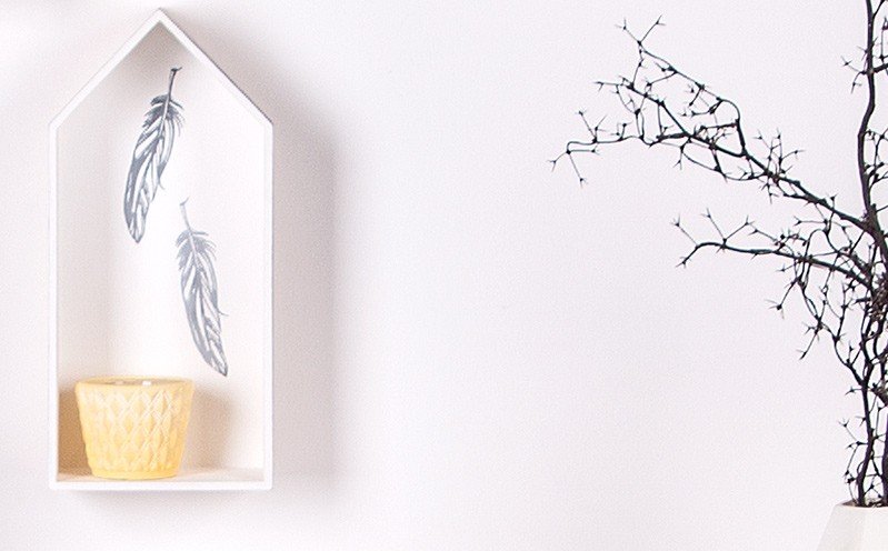Anleitung in 5 Schritten Mit der Siebdruck-Schablone kannst du ganz einfach die grauen Federn auf die Rückwand des Holzhauses auftragen. Chalky Finish speziell für Glas lässt den Teelichthalter leuchten.