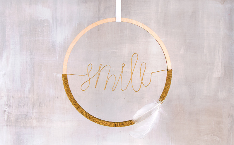 Anleitung in 4 Schritten Lächeln nicht vergessen. Der Holzring zum Hängen mit der Aufschrift „smile“ erinnert dich daran. Und so geht’s: