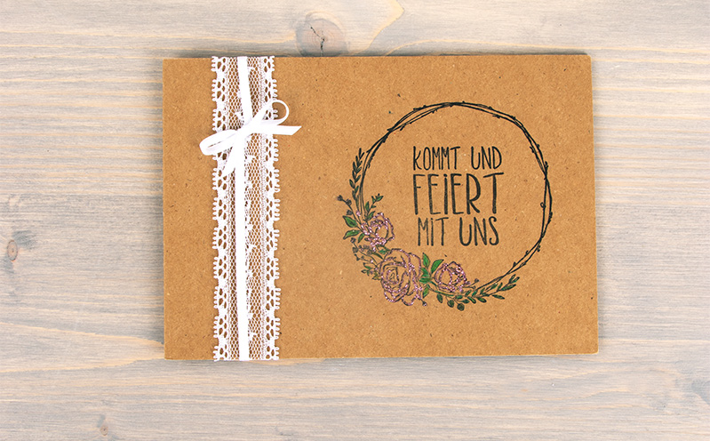 Anleitung in 6 Schritten Verspielt und romantisch – als Einladungskarte zur Hochzeit perfekt. Und mit Stempel und Spitzenband ganz leicht kreiert.