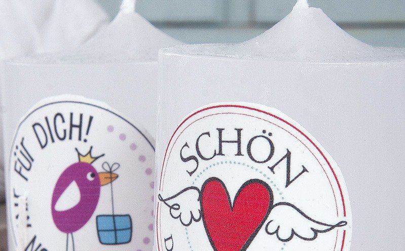 Anleitung in 5 Schritten Die Wachsmotive auf der Vorderseite kannst du fix und fertig auf deine selbstgegossene Kerze aufbringen. Ein bisschen heiße Luft reicht zum Kleben aus.
