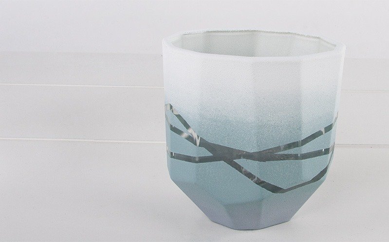 Reinige das Gefäß vor dem Betupfen mit Spülmittel. Klebe das doppel-seitige Klebeband 3 mm im mittleren Bereich des Gefäßes unregelmäßig ab.2 ![]()