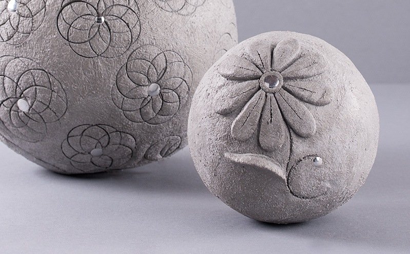 Anleitung in 12 Schritten Wie Kuchenteig wird der Knetbeton zunächst ausgerollt und um die Styroporkugel gelegt. Verzieren kannst du die Betonkugel mit ausgestochenen Beton-Figuren.