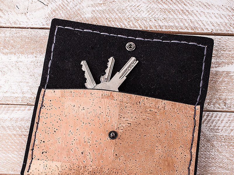Zuschnitt herstellen: Korkstoff – 29 cm × 18 cm; Filzstoff – 29,5 cm × 18,5 cm
