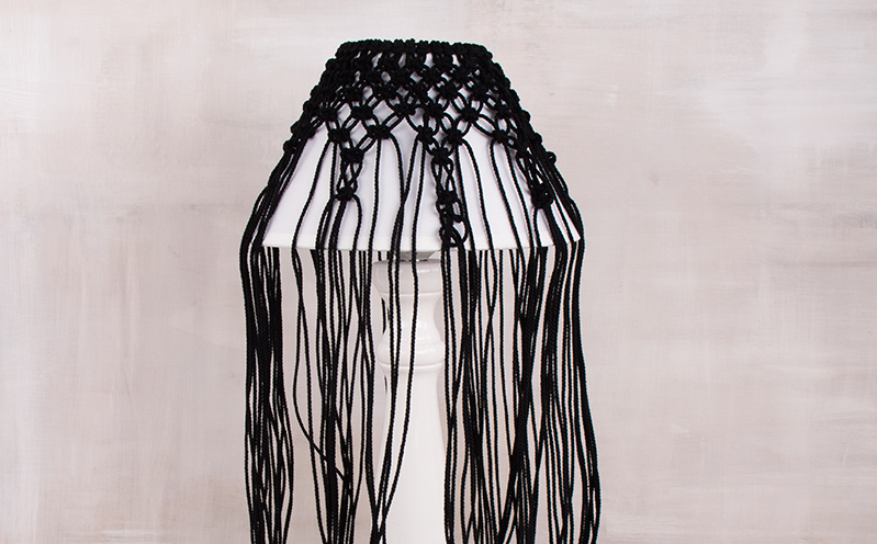 Anleitung in 8 Schritten Eine alte Handarbeitskunst wird neu entdeckt. Unsere Makramee-Lampe wird ganz schlicht in Schwarz geknotet und geknüpft. Und so geht’s: