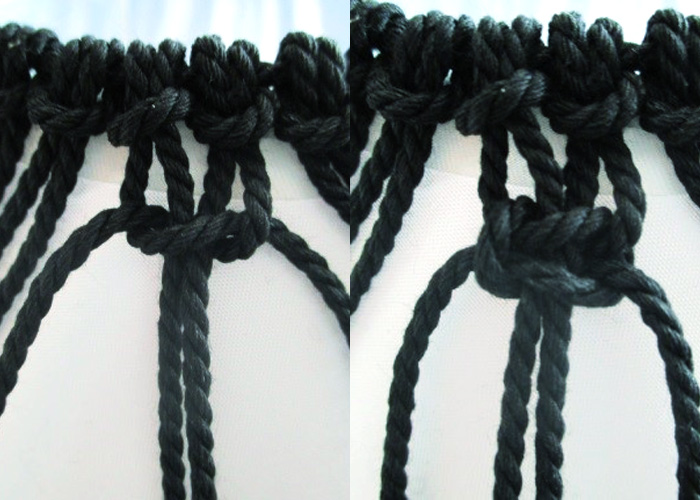Für die auslaufenden Spitzen zwei Knoten nebeneinander knüpfen.7 ![]()