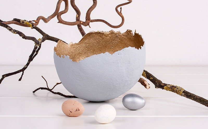 Anschließend den Luftballon vorsichtig herauslösen oder mit einem kleinen Einstich die Luft herauslassen und dann entfernen. Für einen besonderen Effekt kannst Du die Ränder der entstandenen Schale noch zurecht zupfen oder kleine Stücke ausreißen.