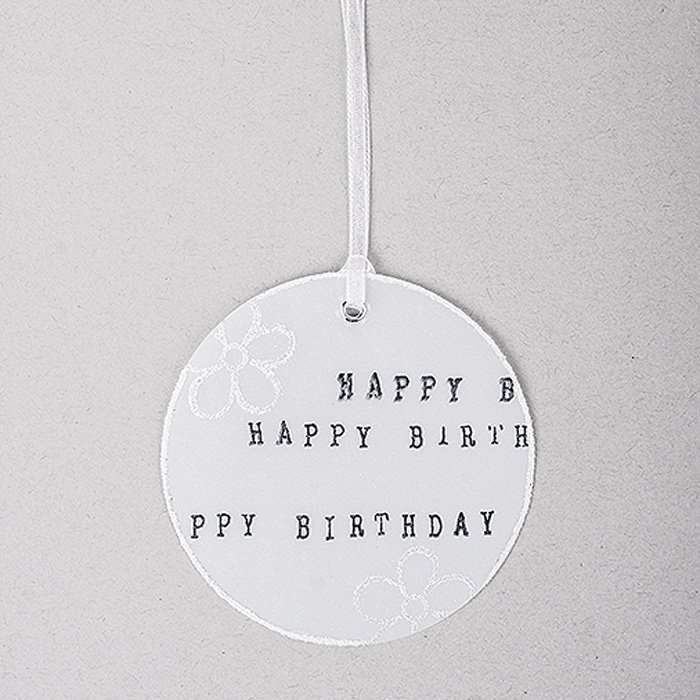 Bestempele den Anhänger mit Hilfe des Wortbandstempels und des Stempelkissens „StazOn“. Trage mit dem Quickie Glue an der Außenkante rundum Kleber auf und streue Flitter ein. Zeichne ebenfalls mit dem Quickie Glue zwei Blümchen auf und beflittere auch diese. Abschließend das Organzaband als Aufhängung anbringen.2 ![]()