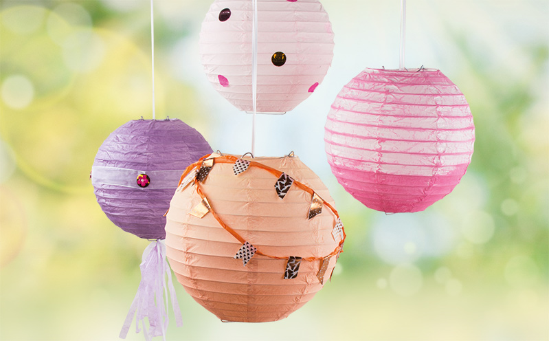 Anleitung in 1 SchrittenGlitzernde Fähnchen zieren den aprikotfarbenen Papierlampion.Und so geht’s: