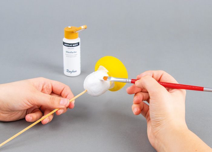 Bemale den Pilzstiel mit der Allesfarbe schneeweiß. Gut trocknen lassen.