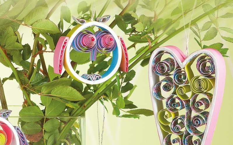 Anleitung in 1 Schritten Die runden Anhänger geben die Form vor. Aus Papierstreifen in den verschiedensten Farben formst du die Quilling-Kreise.