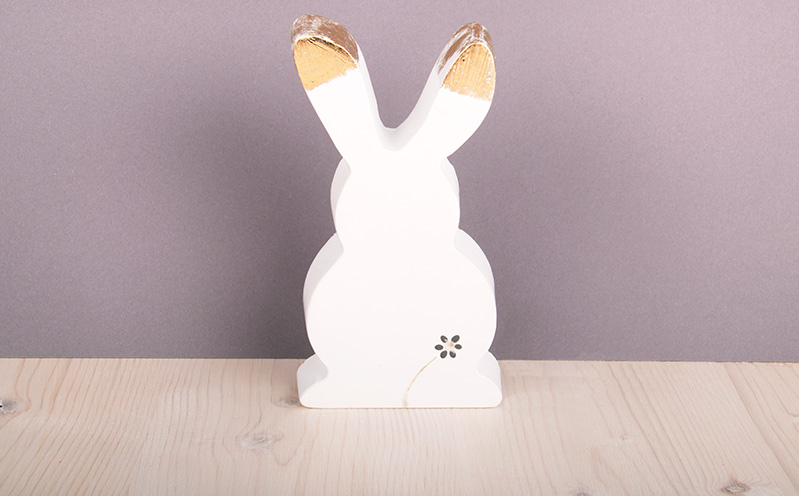 Anleitung in 3 Schritten Oster-Deko schlicht und modern. Die goldenen Ohren des Raysin-Hasens kommen besonders zur Geltung.