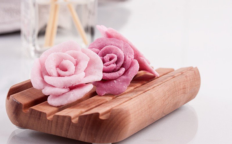 Anleitung in 6 Schritten Knetseife und Farbpulver – mehr brauchst du für die Seifenrosen nicht.