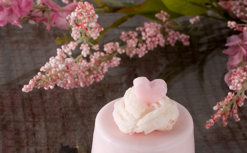 Zum Schluss kannst du ein paar Körner Badesalz mit etwas flüssiger weißer Seife auf dem Seifenkonfekt platzieren.8 ![]()