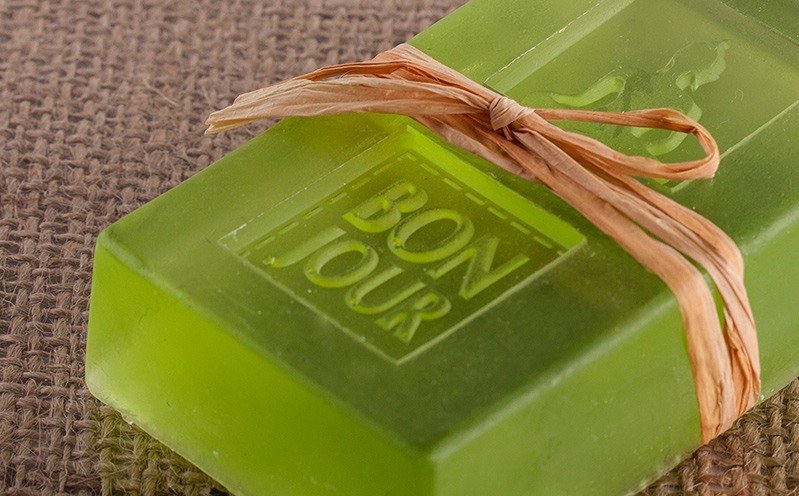 Anleitung in 8 Schritten Durch dein Seifenstück kannst du auch nach der grünen Färbung durchschauen. Grundlage ist nämlich der transparente Seifenblock.