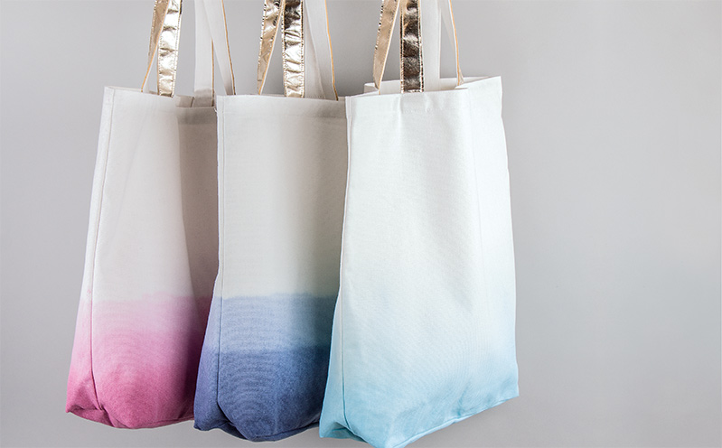 Anleitung in 4 Schritten Batik-Technik ganz neu interpretiert. Sanfte, pastellfarbene Farbverläufe zieren die Stofftasche.