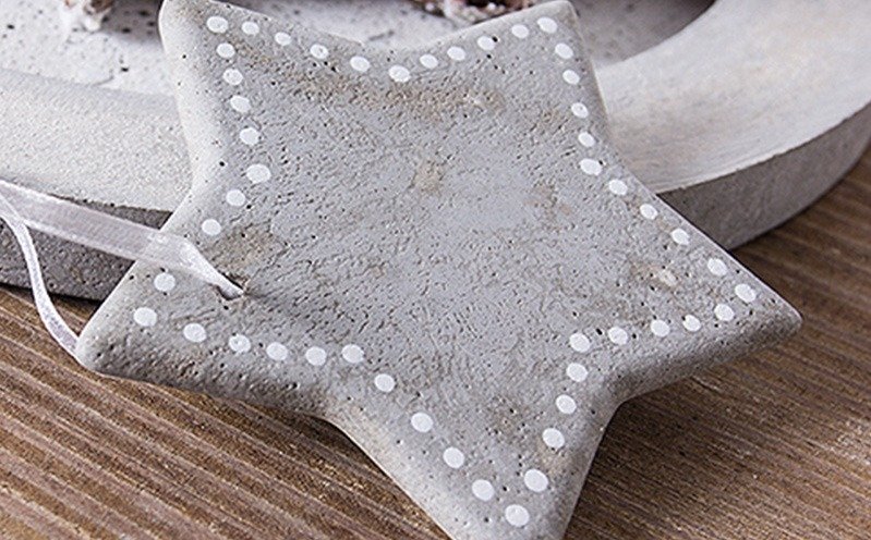 Anleitung in 9 Schritten Mal den Beton-Stern mit dem Acrylmarker an und häng ihn mit Organza Band auf.