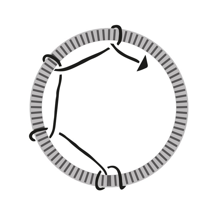Nacheinander alle Schlaufen anfertigen (im großen Ring eine 3. Reihe erstellen).