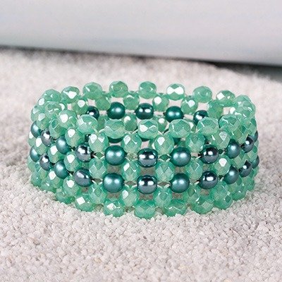 Anleitung in 20 Schritten Die Rocailles-Perlen in Blautönen werden ganz speziell aufgefädelt. So entsteht ein rundes Armband. Und so geht’s: