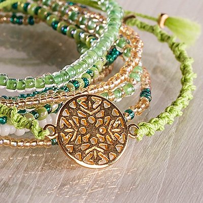 Für das Armband 7 Delica-Rocailles 1,6 mm in deinem gewünschten Farbwechsel auffädeln und zu einem Ring zusammenknoten.Eine Schritt-für-Schritt Anleitung findest du im PDF der Bastelidee. Einfach herunterladen.