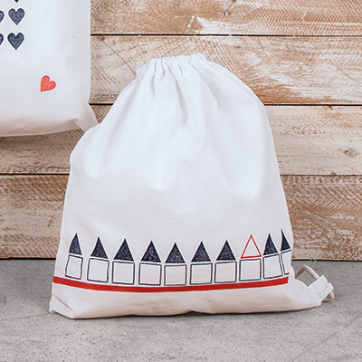 Wasche die Kosmetiktasche ohne Weichspüler vor und bügle sie glatt, bevor du mit dem Schablonieren beginnst. Stecke einen Karton oder ein dickeres Papier in die vorbereitete Tasche, dann kannst du loslegen.2 ![]()