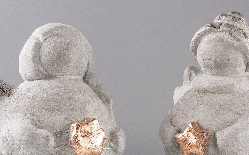 Forme aus Knetbeton Arme, Flügel, Haare und einen kleinen Stern und bringe diese auf die ummantelte Styroporfigur auf (die Verbindungsstelle evtl. mit dem Daumen verstreichen). Der Stern kann auch mit einem kleinen Metall-Ausstecher hergestellt werden. Für einen raffinierten Look den Stern noch mit Draht verzieren.Tipp: Die Betonmasse sollte geschmeidig und gut formbar sein. Ist der Beton beim Kneten oder Arbeiten zu rissig, besprühst du diesen mit etwas Wasser. Die Verbindungsstellen sollten immer feucht sein, eventuell mit einem leicht feuchten Pinsel bearbeiten.