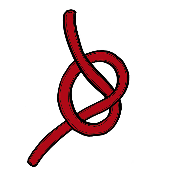 Den Rundriemen aus Ziegenleder fädelst du durch den Schlüsselring, legst ihn mittig, fädelst die Rohholzkugeln entsprechend der Abbildung auf und fixierst die Holzkugeln mit einem Überhandknoten.