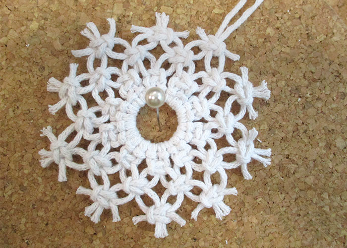 Anleitung in 7 Schritten Garn, einen Schmuckring und etwas Fingerspitzengefühl braucht es für diese selbstgemachte Schneeflocke. Und so geht’s: