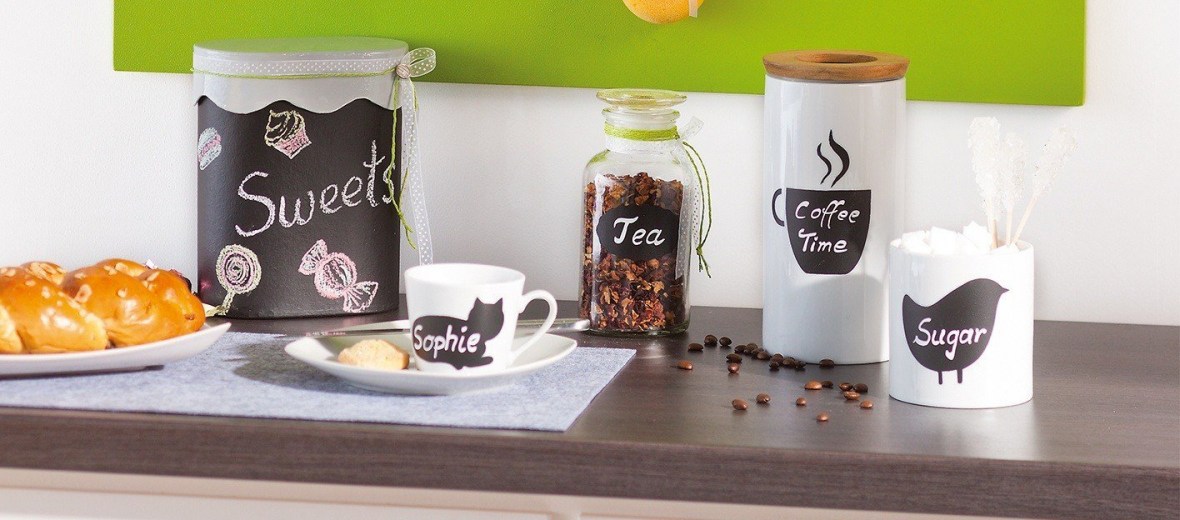 The black chalkboard paint is available as a classical version for boards and walls, and as a version for glass and porcelain or textile items such as shirts and pillows. The transparent chalkboard varnish ensures a splash of colour. With it, the acrylic paints can be recoated, and thus transformed into writable surfaces with chalk. Whether in bright-green or pinkish red – this product provides you a lot of possibilities. You like it simple? How about then with blackboard stickers in various motifs? They can be applied on numerous substrates and immediately writable and paintable. For this purpose, we have a chalk-marker available in 11 colours, or our usual chalk-crayon. Whatever you choose – from now on, you can make a statement anytime & anywhere!