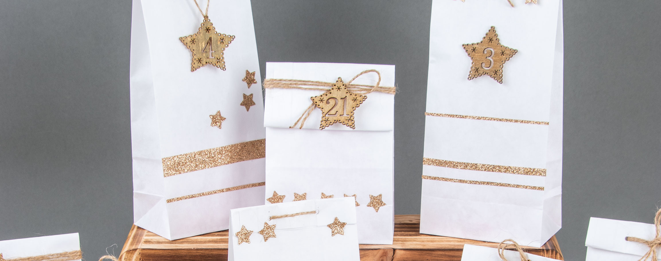 Instructions in 5 steps The white block bottom bags are perfect for self-made Advent calendars - you can decorate them with Advent numbers and the sisal rope. And this is how it works: