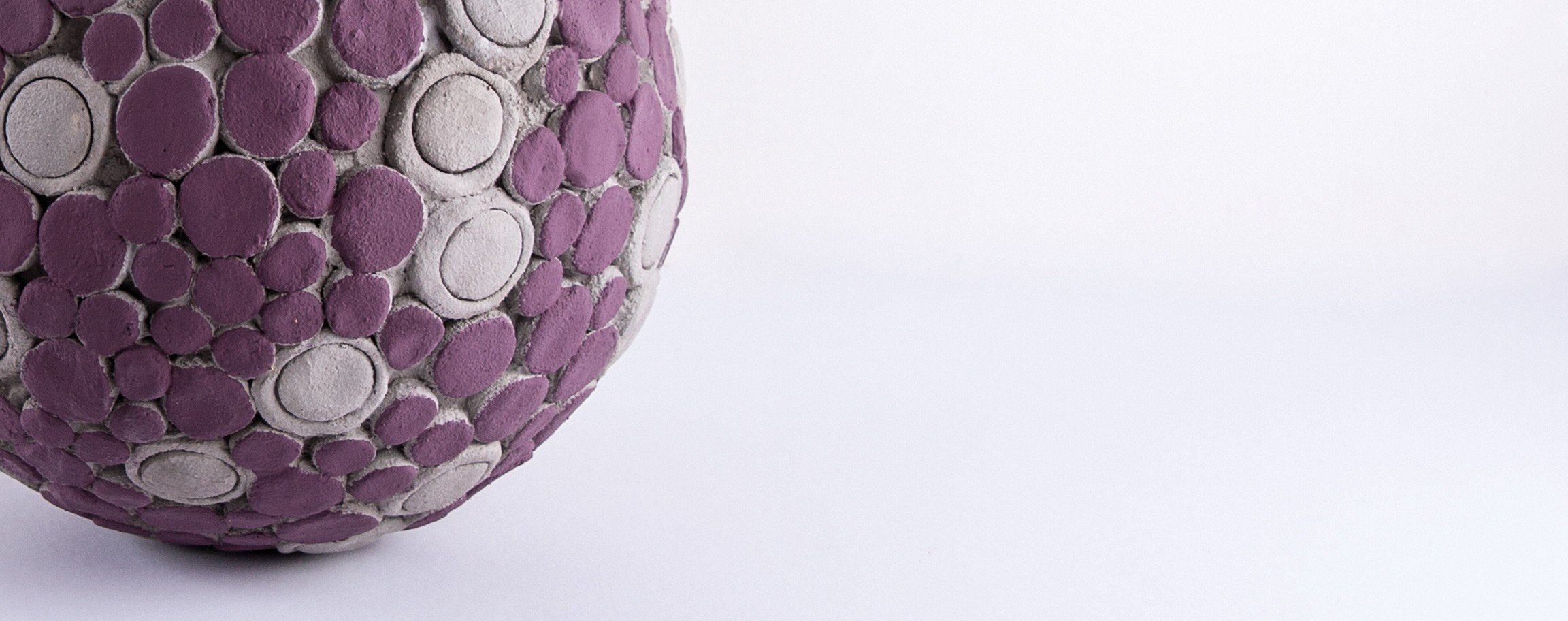 Repeat the mixing of the remaining kneading-cement as already described and coat the free styrofoam-surface as described for the first half. Damp the dry/fresh connection joints of the kneading-cement with a brush, so that the two layers bond well. Decorate as well the second half as already above described with circles in different sizes.11 ![]()