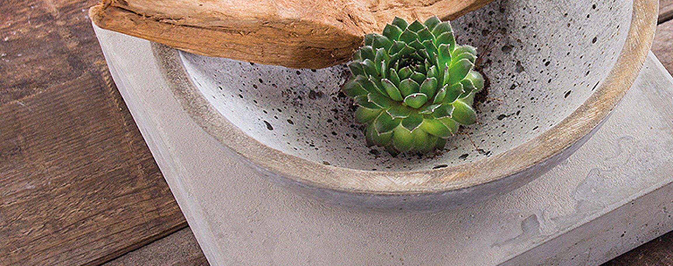 Finally, demould the bowl out of cement by turning the half-ball around and bending slightly the upper edge outwards, so that the air penetrates between the casting object and mould. Tap the plastic half-ball gently on your working surface, so that the bowl out of cement becomes detached.14 ![]()