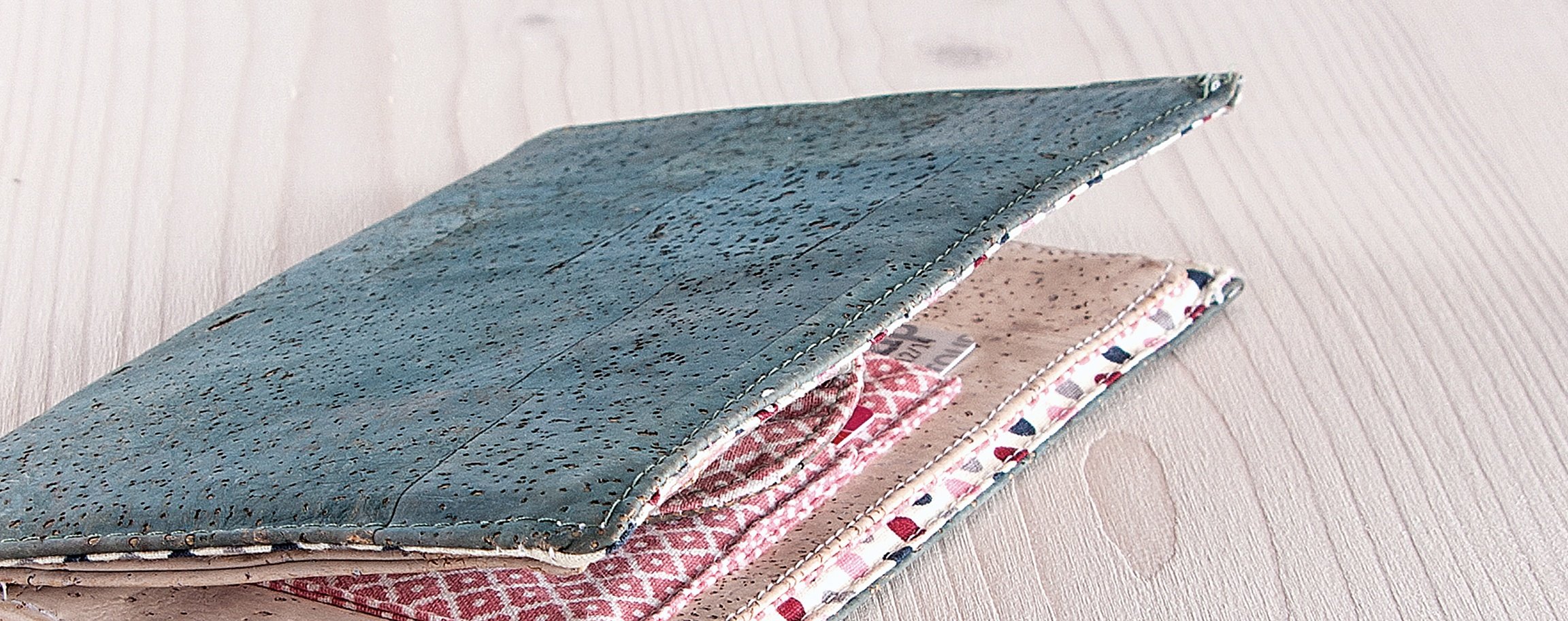 Instructions in 8 steps Cut to size the cork fabric and cotton fabric according to the cutting pattern and sew them together according to the instructions.