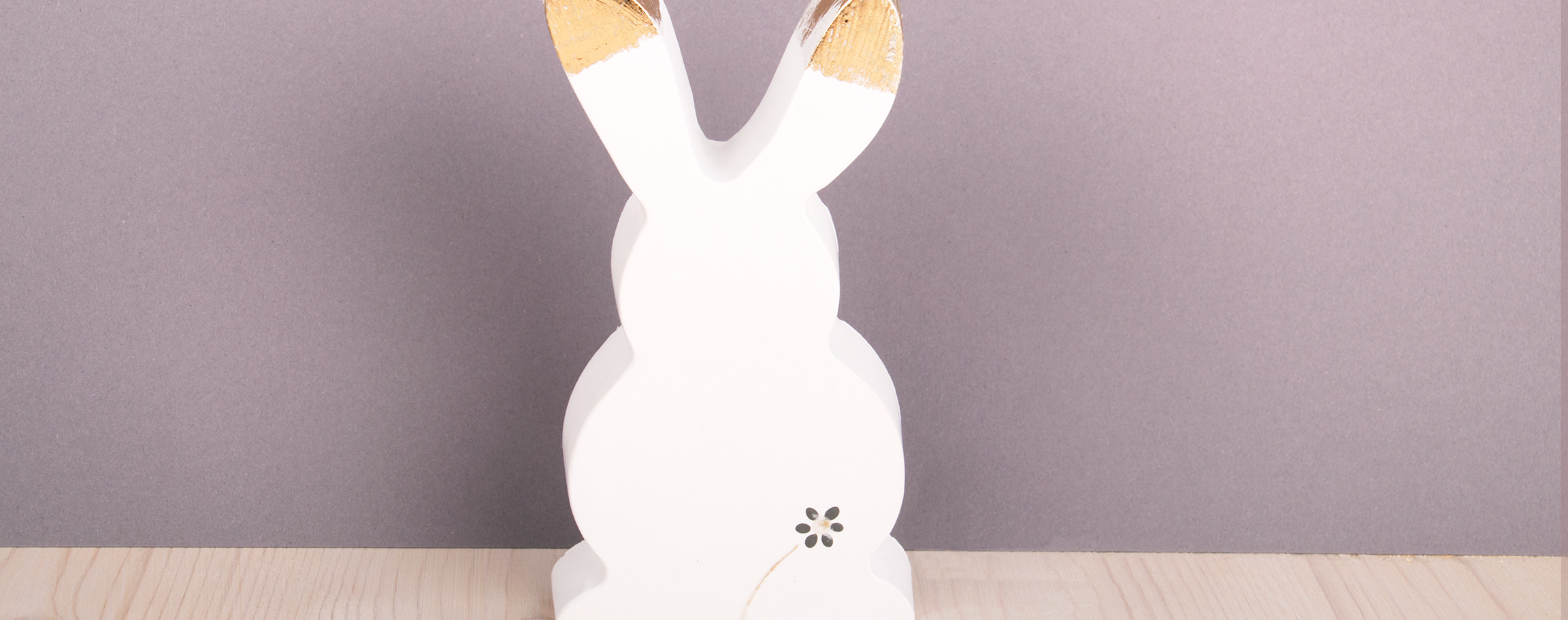 Instructions in 3 steps A simple and modern Easter decoration. The golden ears of the Raysin bunny are particularly highlighted.