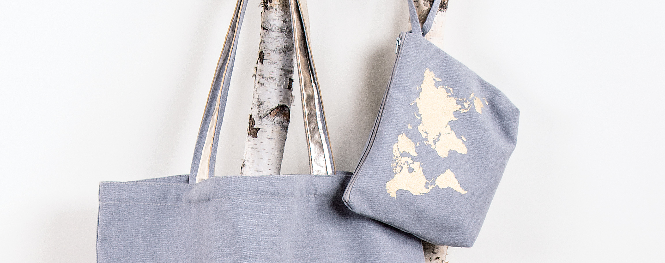 Instructions in 4 steps For the next road trip - Enhance the grey fabric bag with a golden world map by means of the screen printing stencil.