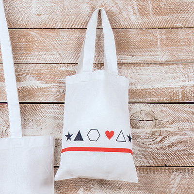 Pre-wash the cotton bag without fabric softener and flatten it by ironing before you start stencilling. Put a cardboard or a thick paper into the already prepared bag and you can get started.2 ![]()