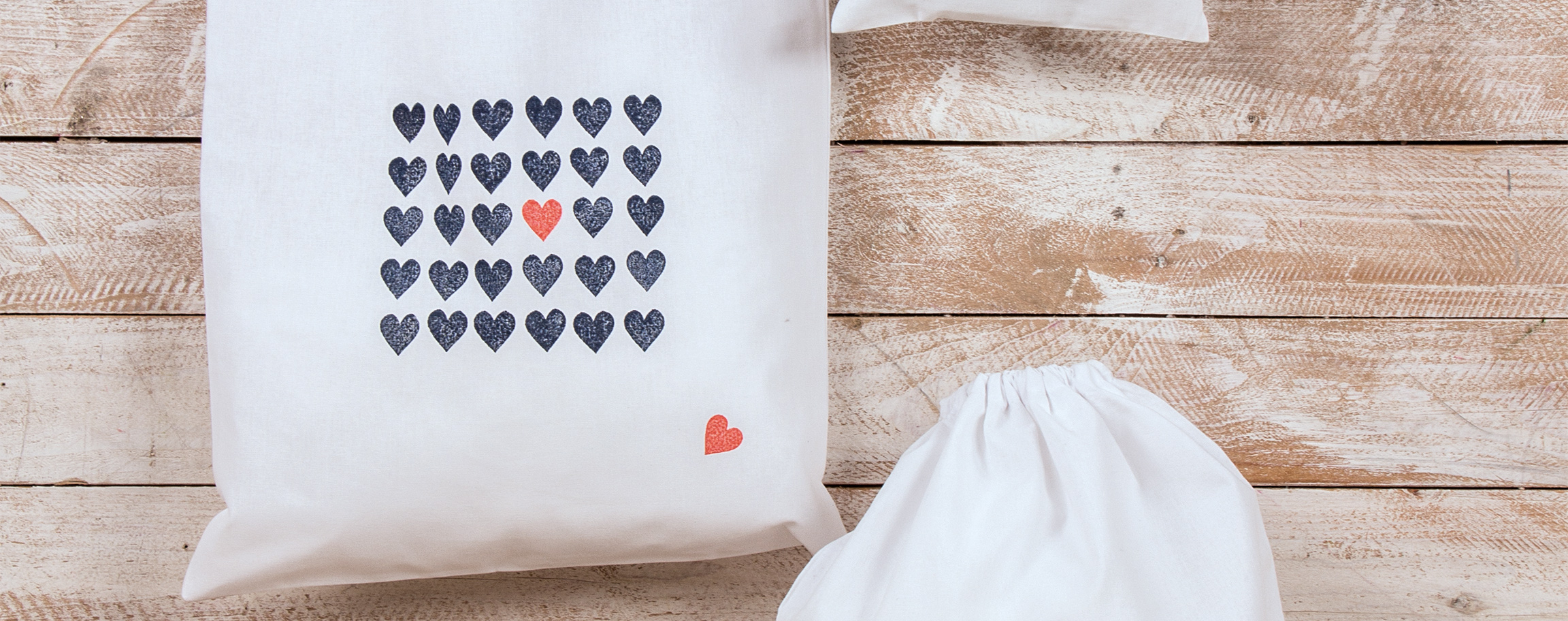 Instructions in 4 steps Cotton bag with hearts - stamped on and ready for use.