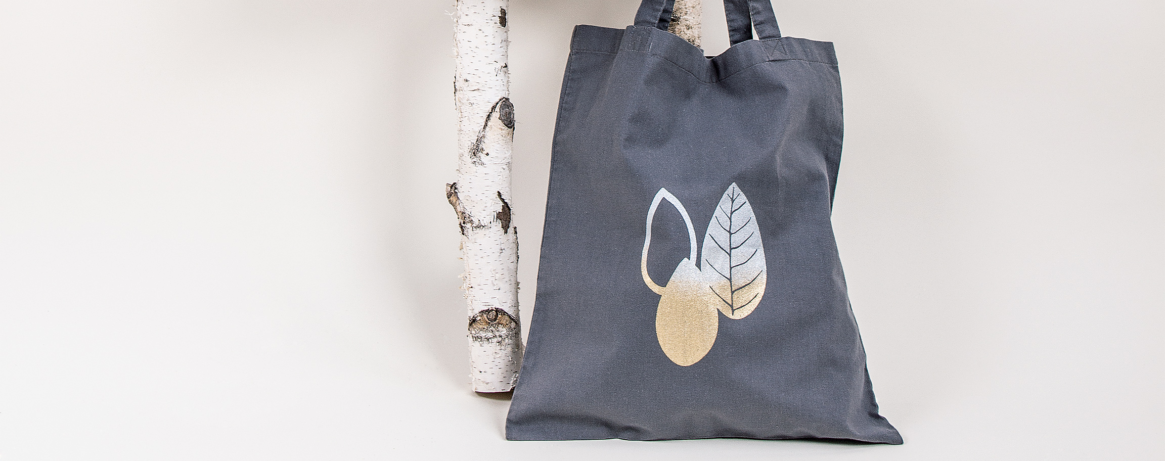 Instructions in 4 steps The gold and silver colour gradient of the leaves can be easily achieved on your cotton bag with the screen printing stencil.