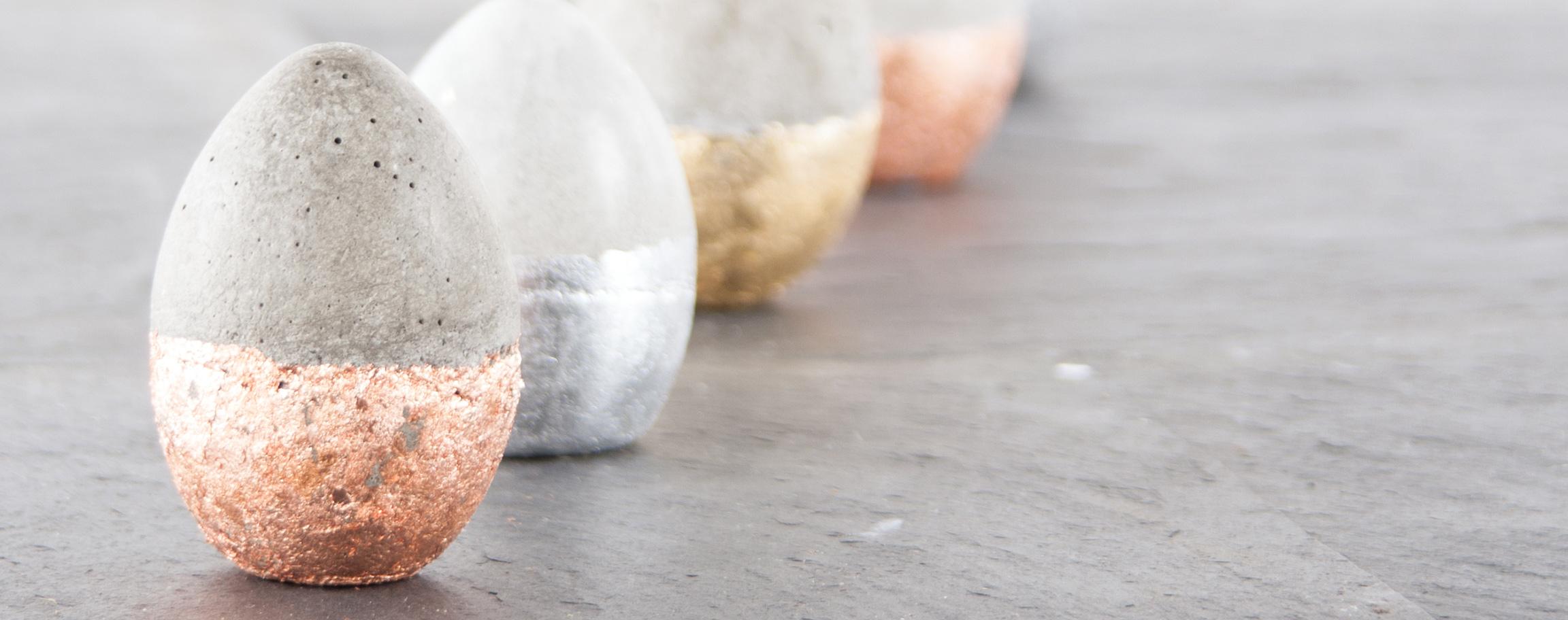 Instructions in 5 steps Conjure up that very special look on decorative eggs out of concrete: affix the decorative metal flakes on with the special gilding adhesive – a unique shine is achieved. And this is how it works: