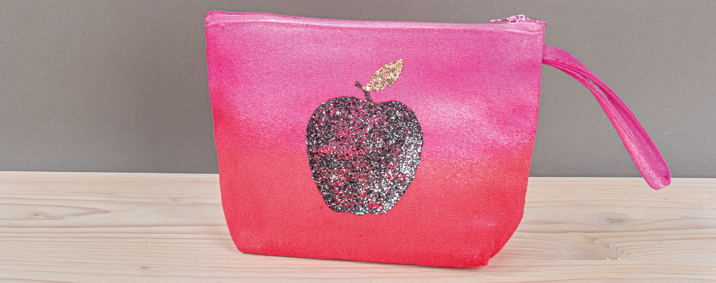 Instructions in 5 steps Achieve a great colour gradient with our textile spray paint. The fabric paint Extreme Glitter gives the stencilled apple the expected glamour.